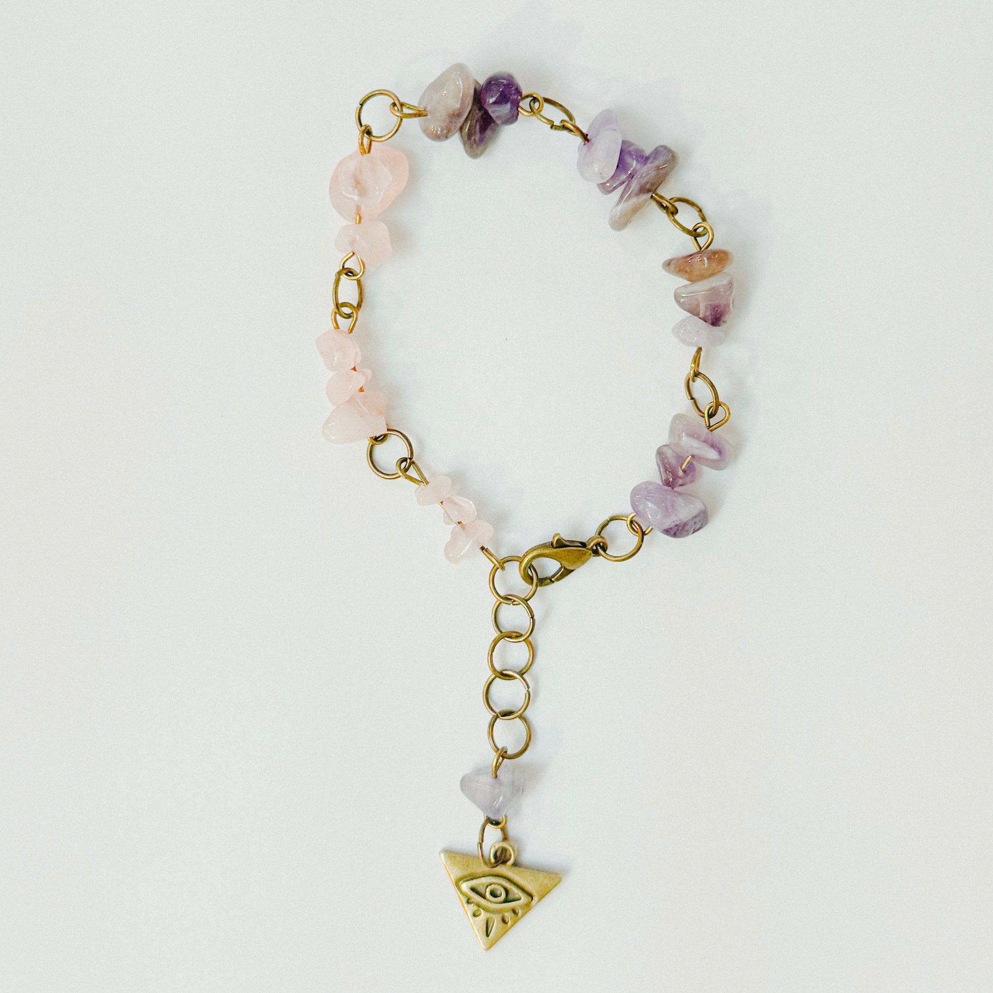 Handmade - Crystal Chip Charm Bracelet - • Rose Quartz • Amethyst